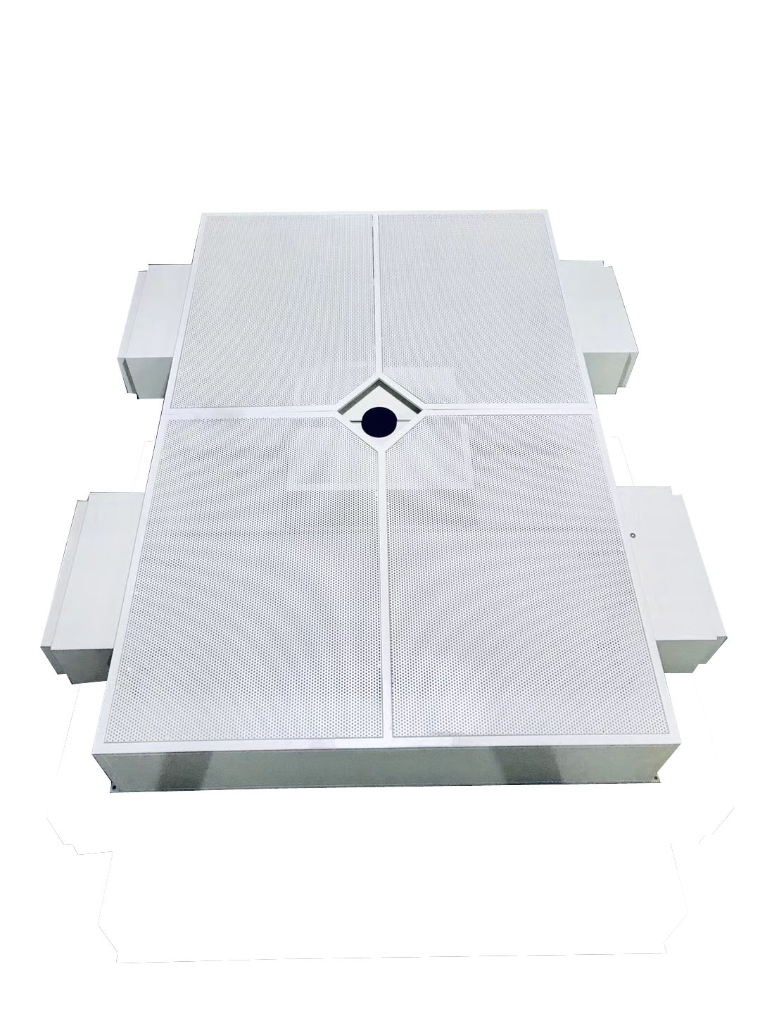 D 均流模式:多块网孔板组合,出风均韵,静电粉末喷涂,和墙顶面同色,表面效果好;
