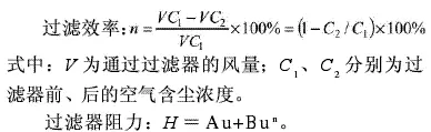 式中:A为滤料层结构特性系数;B为嘿嘿视频在线观看结构阻力系数;u为嘿嘿视频在线观看面风速,m/s;n为试验指数。容尘量:当嘿嘿视频在线观看的阻力(在额定风量下)达到终阻力时,嘿嘿视频在线观看所容纳的尘埃质量。
