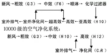 此外,从以上空气净化系统的流程图中还可以看出,10000级洁净室的空气过滤系统中两级中效嘿嘿视频在线观看效率之间没有级差,使前一级嘿嘿视频在线观看没有起到保护后一级嘿嘿视频在线观看的作用。